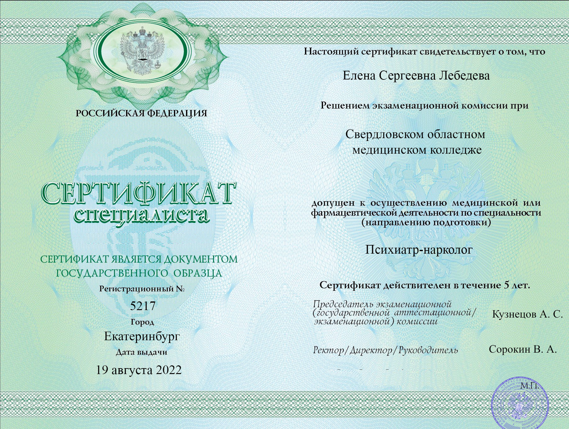 Елена Сергеевна Лебедева врач нарколог клиники доктора Стукаловой в Коле